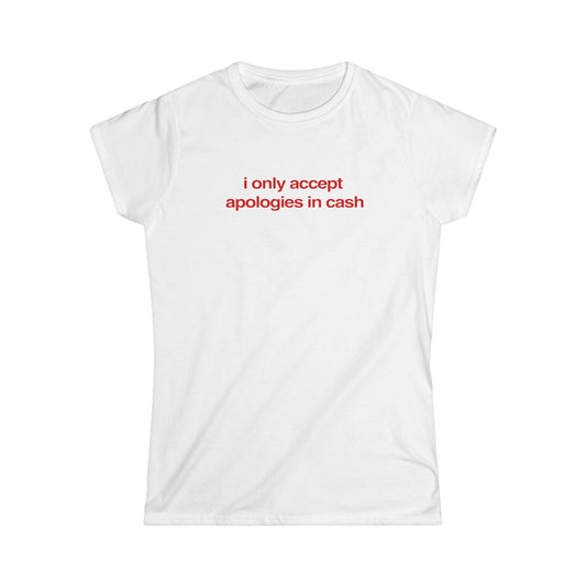 I Only Accept Apologies In Cash T-shirt Baby Tee